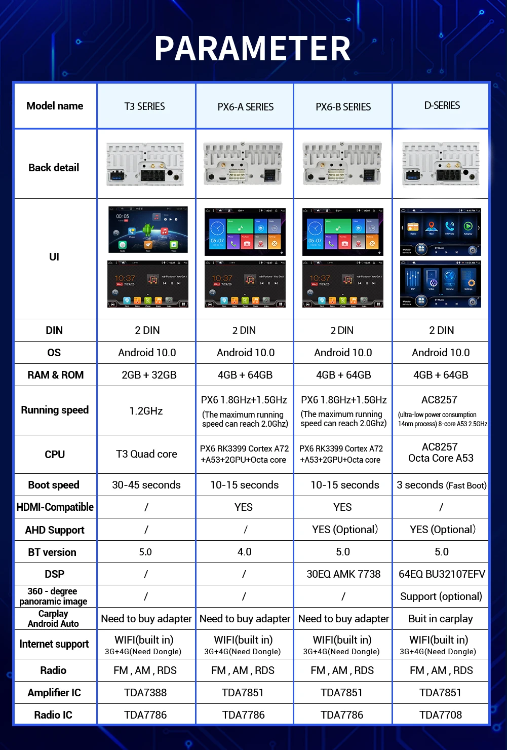 ● Чистая ОС Android 10,0● ОЗУ 4 Гб + ПЗУ 64 ГБ● CPU:PX6 Cortex 3399 двухъядерный процессор A72 + четырехъядерный процессор A53 2 ГГц● Поддержка выхода, совместимого с HDMI. Выходной порт HDMI обеспечивает метод подключения между головным блоком и монитором с поддержкой HDMI или другим устройством. С помощью кабеля HDMI вы можете поделиться видео высокой четкости и аудио высокого качества со всеми пассажирами в вашем автомобиле.● PX6 является лучшим чипом на рынке в настоящее время, он работает быстрее, чем все другие типы. Балл ANTUTU составляет 117986, что лучше, чем T3.MTK, PX5 и всех других типов 4 + 64G на рынке.● Цифровой DSP делает качество звука автомобиля лучше, чем раньше. Чип dsp AKM7388 + TDA7803. Качество звука намного лучше, чем в других версиях, другие бренды DSP, и коэффициент шумоподавления может достигать 115 дБ● HDMI-совместимый, выходной порт HDMI обеспечивает метод подключения между головным блоком и монитором с поддержкой HDMI или другим устройством. С помощью кабеля HDMI вы можете поделиться видео высокой четкости и аудио высокого качества со всеми пассажирами в вашем автомобиле.
