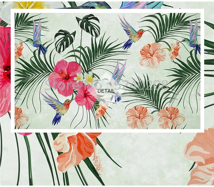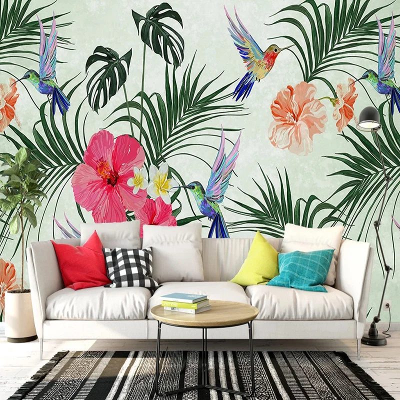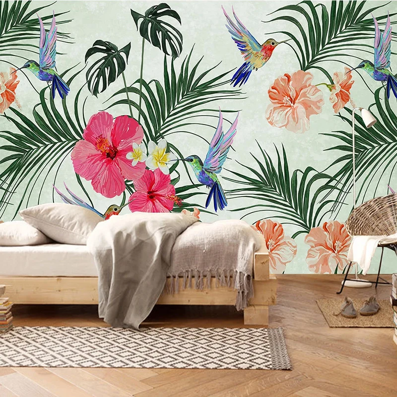 Фотообои на заказ, 3D Ручная роспись, акварель, тропические листья, цветы и птицы, самоклеящиеся, водонепроницаемые, 3D наклейки на стену