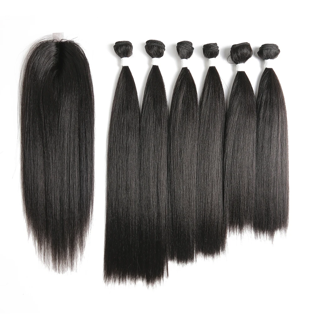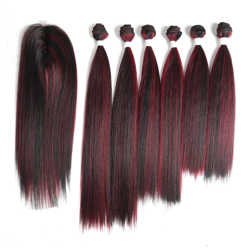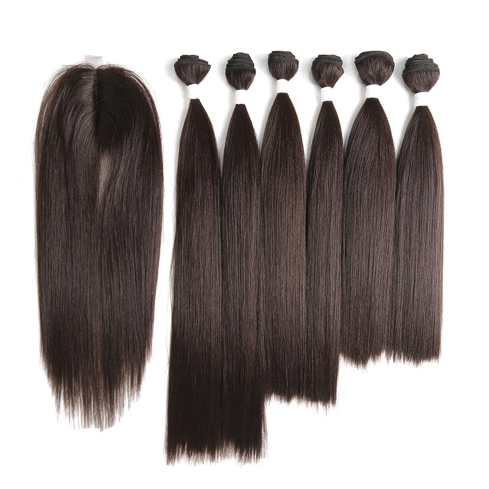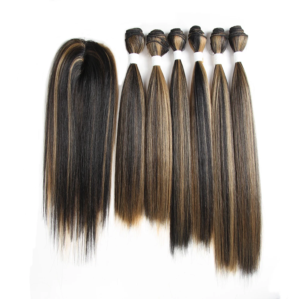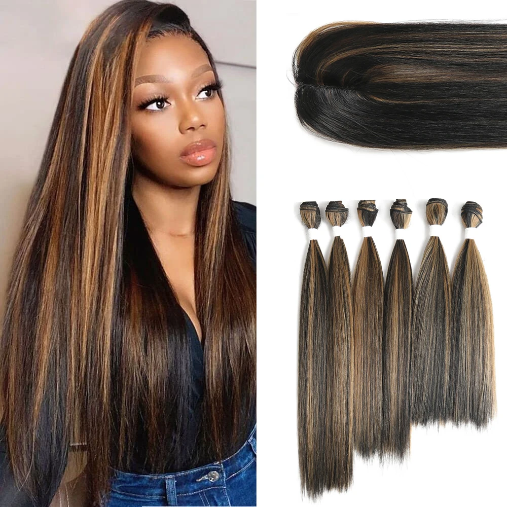 Накладные синтетические волосы SOKU, накладные волосы из термостойкого волокна коричневого цвета с эффектом омбре, 6 Пряди ков
