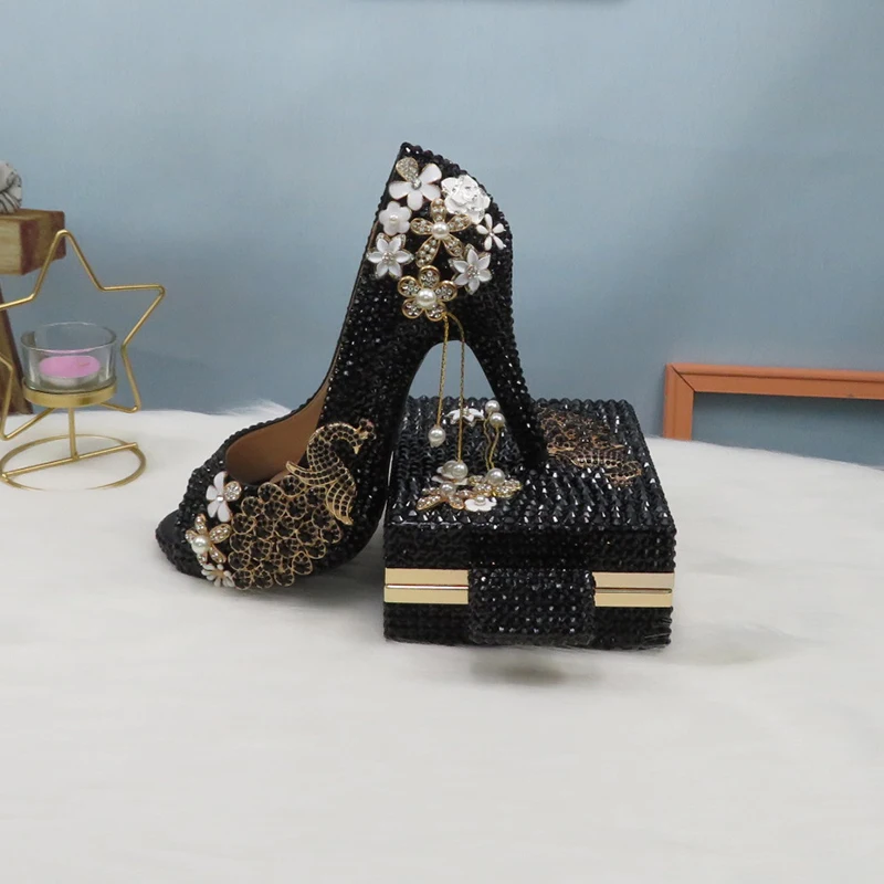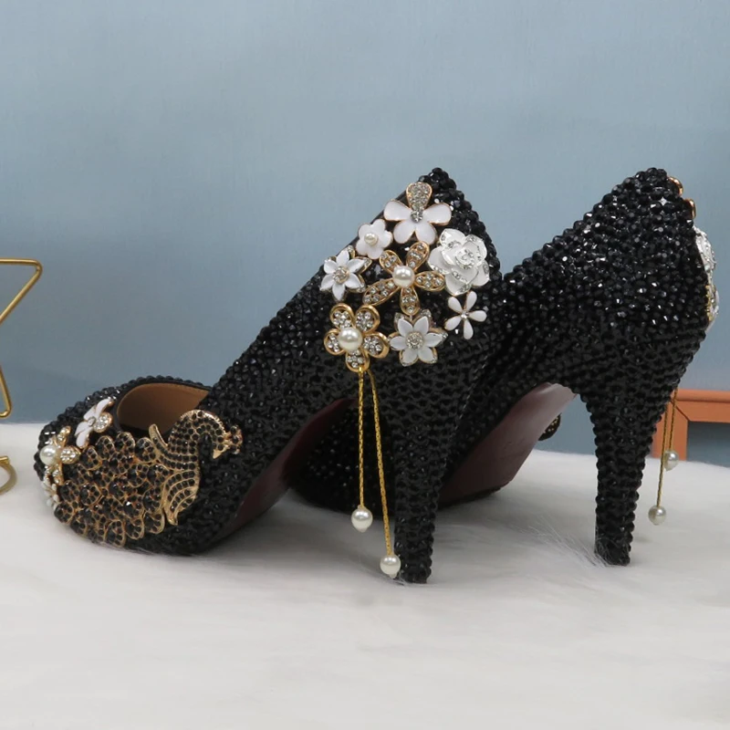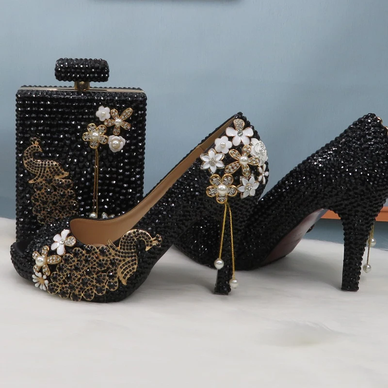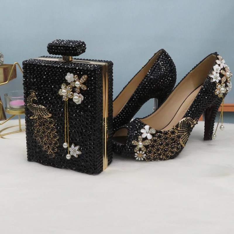 Женские свадебные туфли BaoYaFang, черные туфли с открытым носком, на платформе и высоком каблуке