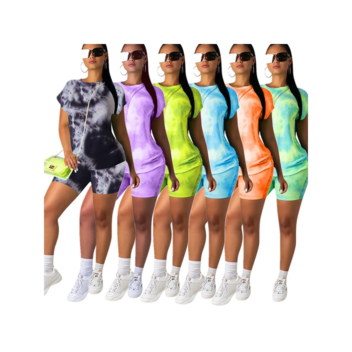 Спортивный костюм женский летний из 2 предметов с коротким рукавом и велосипедных шортов
