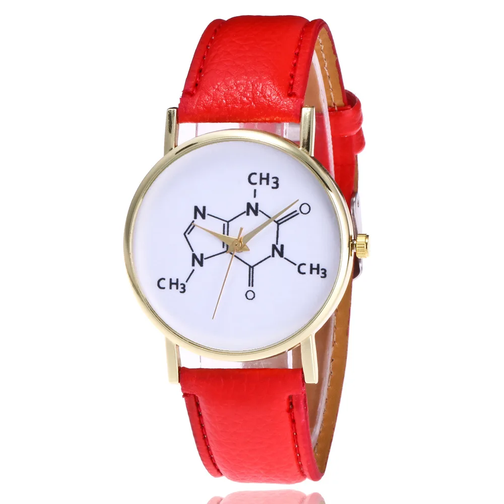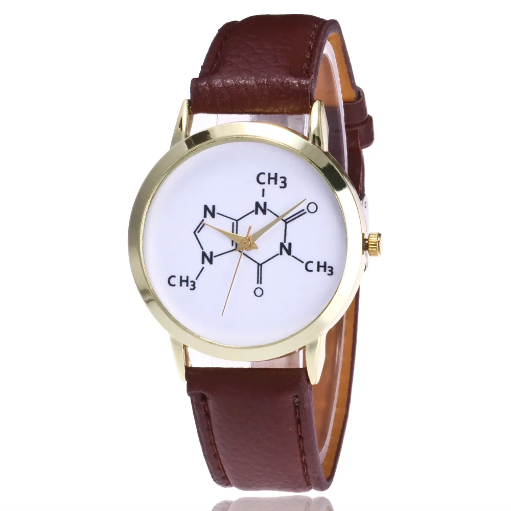 Модные наручные часы с изображением кофеина часы молекула года, с кожаным ремешком