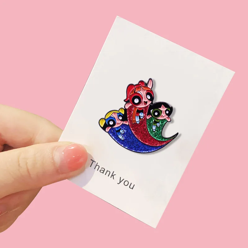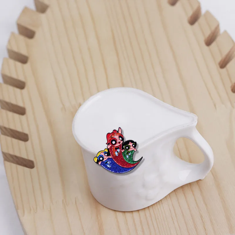 Брошь на лацкан Powerpuff, с эмалью, для девочек, коллекция, фемини...