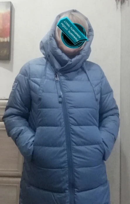 Пришёл за две недели, цвет изумительный, голубо серый(отличается от картинки продавца, красивее чем банальный голубой) мне в нем тепло, ходила при минус 23, размер 5xl на параметры 116 - 100-124,сел как надо, можно даже тёплую кофту одеть если будет - 35 и ниже.Конечно фото цвет не передаёт очень жаль.