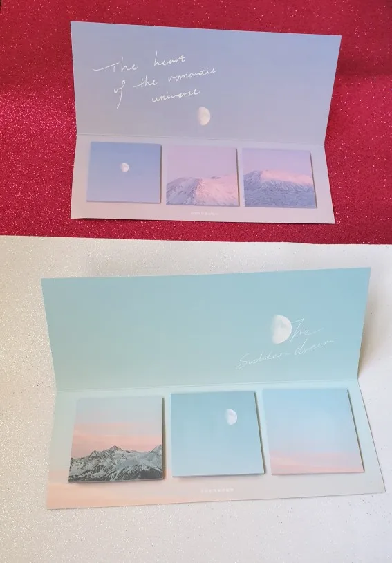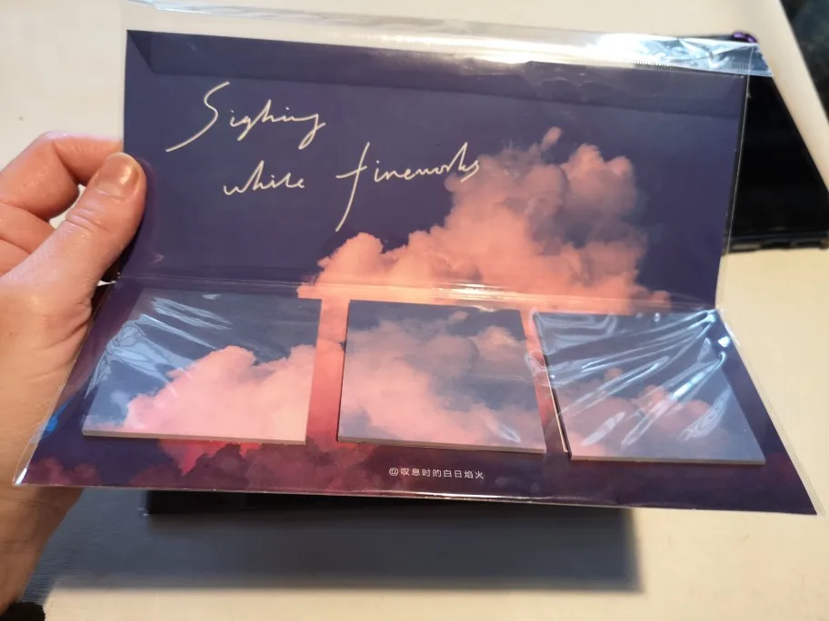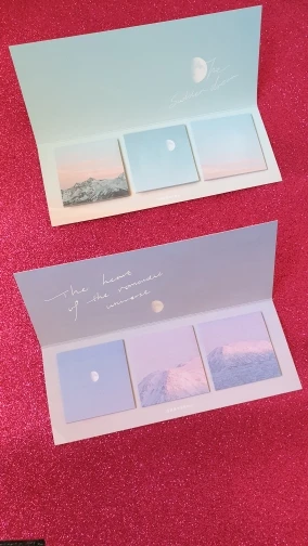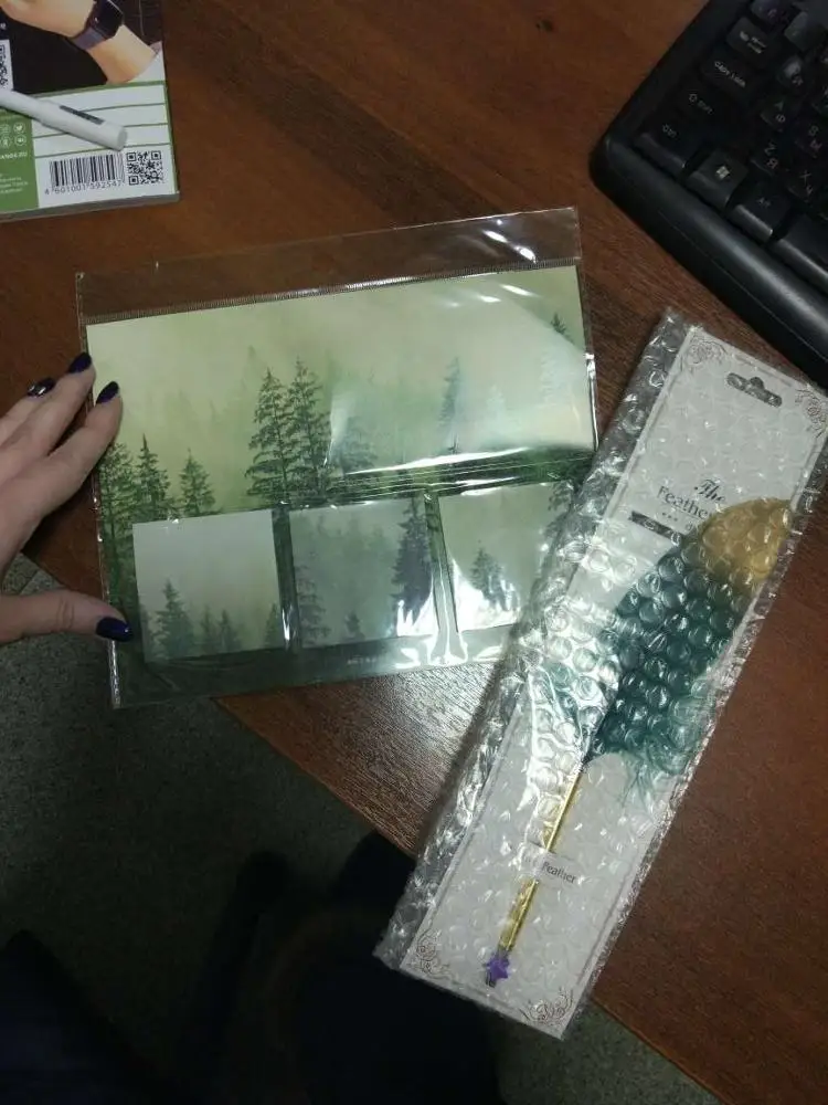 Очень красивые блоки для записей. Пришло упакованное в пупырчатый конверт. Посылка шла около месяца. Видно, что кто-то пытался её согнуть (на почте видимо), у них не получилось, но залом небольшой остался. Надеюсь, это не омрачит радости... потому что брала в подарок.