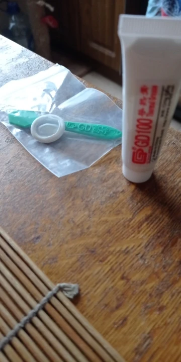 Доставка чуть дольше двух месяцев долго очень. Марка пасты довольно известная. В комплекте лопатка-шпатель и пара напальчников. Паста "свежая" Покупкой доволен.