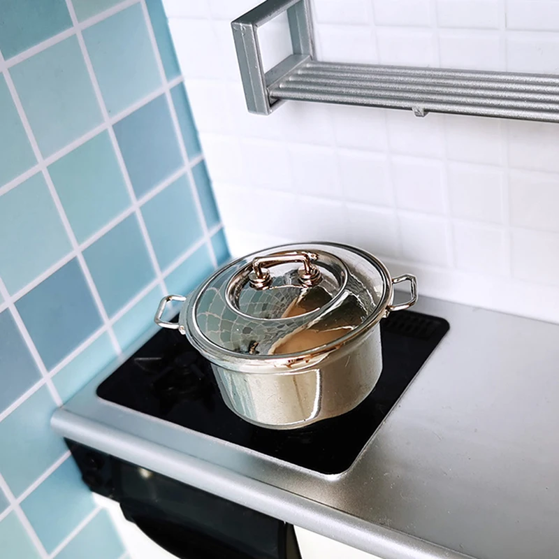 Кукольный домик 1:12, миниатюрный металлический кухонный суп-горшок...
