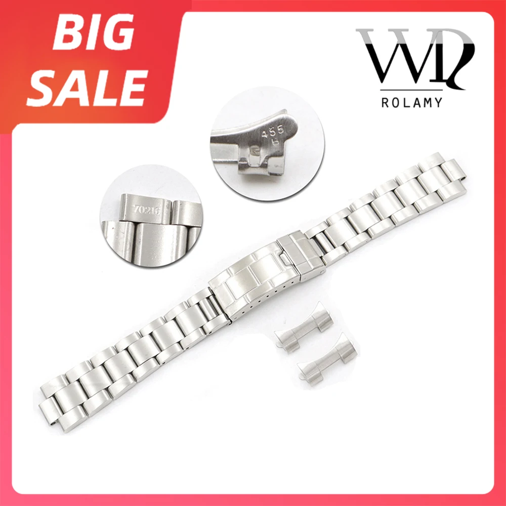 Rolamy 20 мм 316L стальной ремешок для часов, полый изогнутый конец, Скользящий замок, застежка, серебряный матовый браслет для часов, винтажный браслет для часов, Oyster