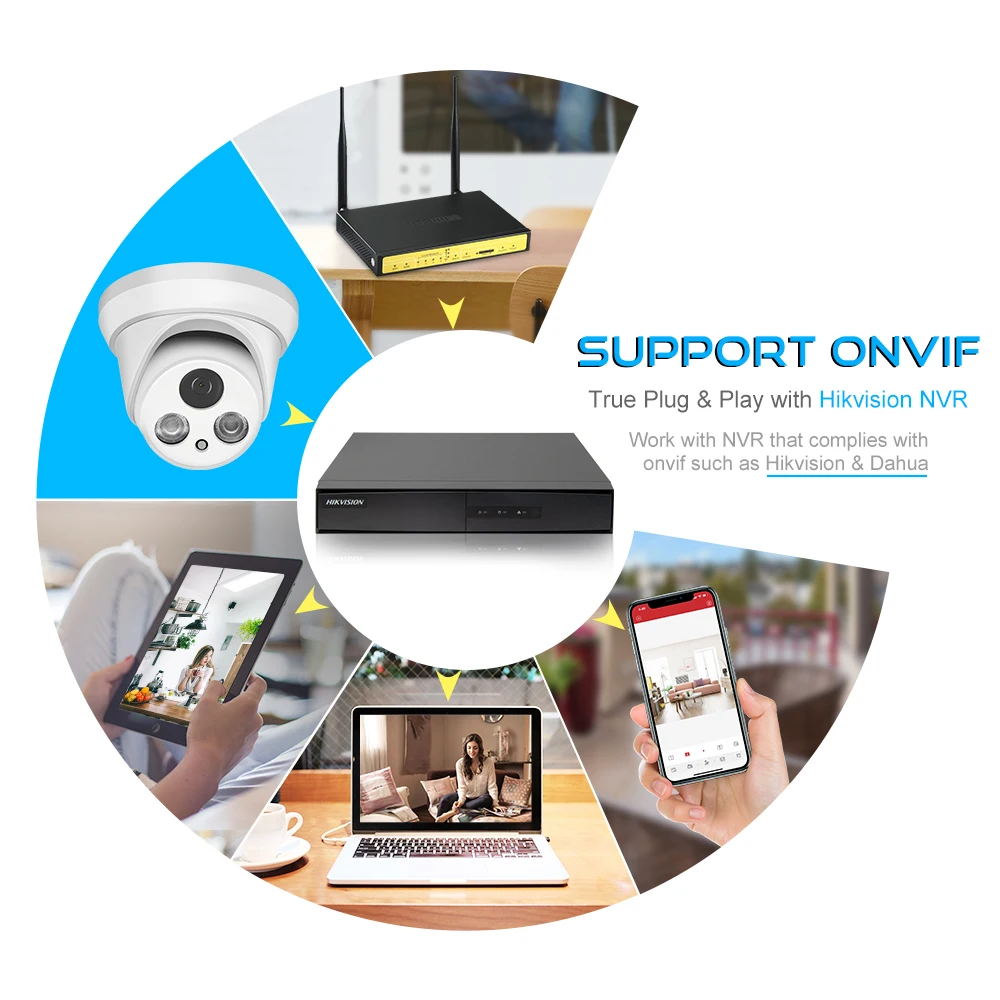> Совместимая ip-камера Hikvision также поддерживает ONVIF, поэтому она подходит для многих брендовых NVR (таких как hikvison, Dahua NVR и т. д.)