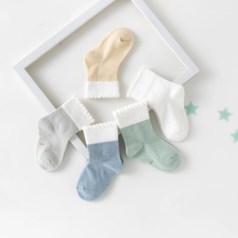 Носки детские, хлопковые, однотонные, разноцветные, 5 парЛот, От 0 до 2 лет