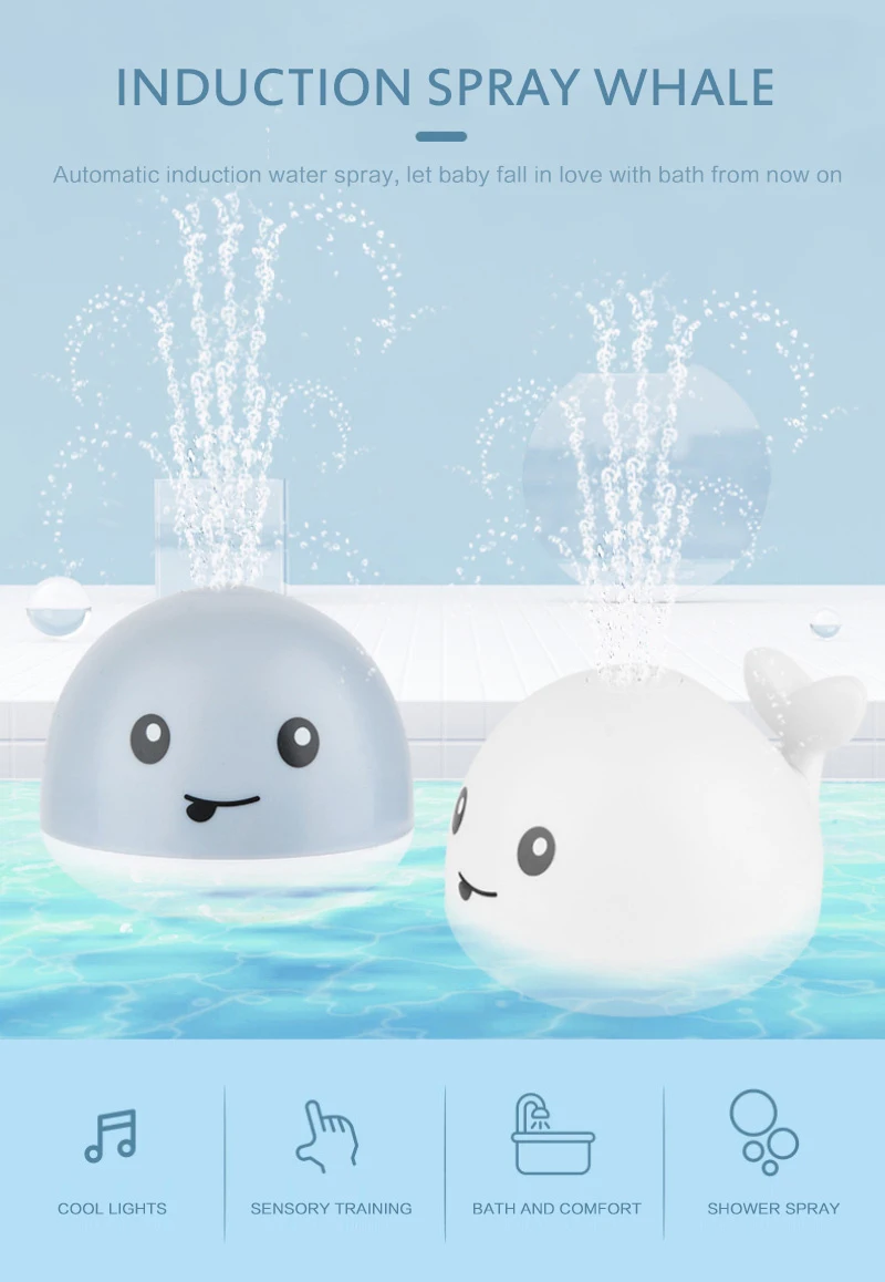 Новая детская игрушка для ванны, распылитель воды для душа, мультяшный КИТ, Электрический индукционный спринклер, музыкальная красочная игрушка