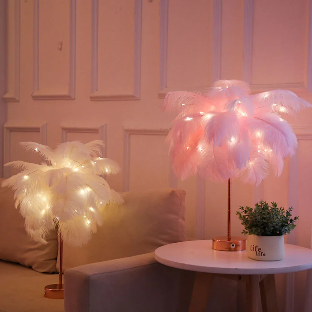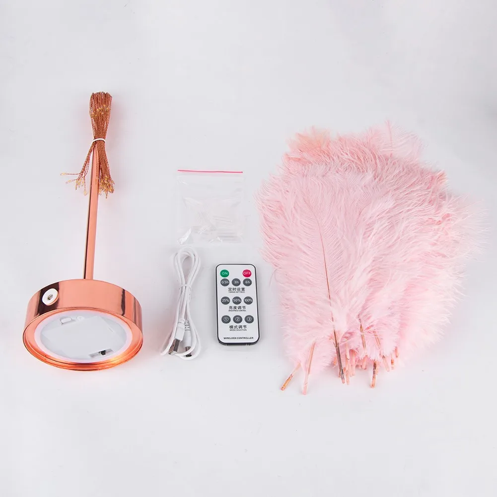 Ночной светильник с железным пером для кровати с пультом дистанционного управления, волшебная медная лампа с питанием от USBAAA батареи, перьевой абажур