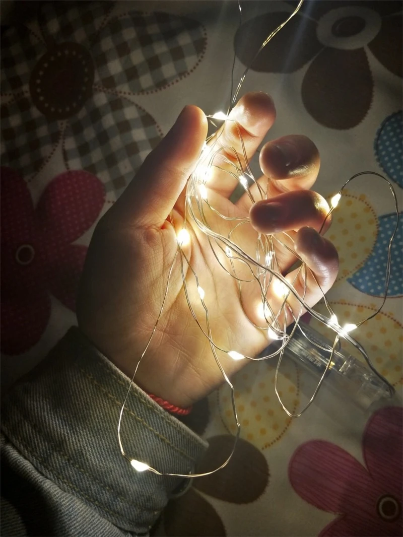 Светодиодная гирлянда с серебряным проводом, Сказочная теплая белая Гирлянда, украшение для дома, Рождества, свадьбы, праздника, вечевечерние, питание от батареи