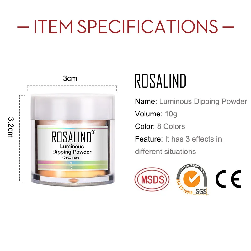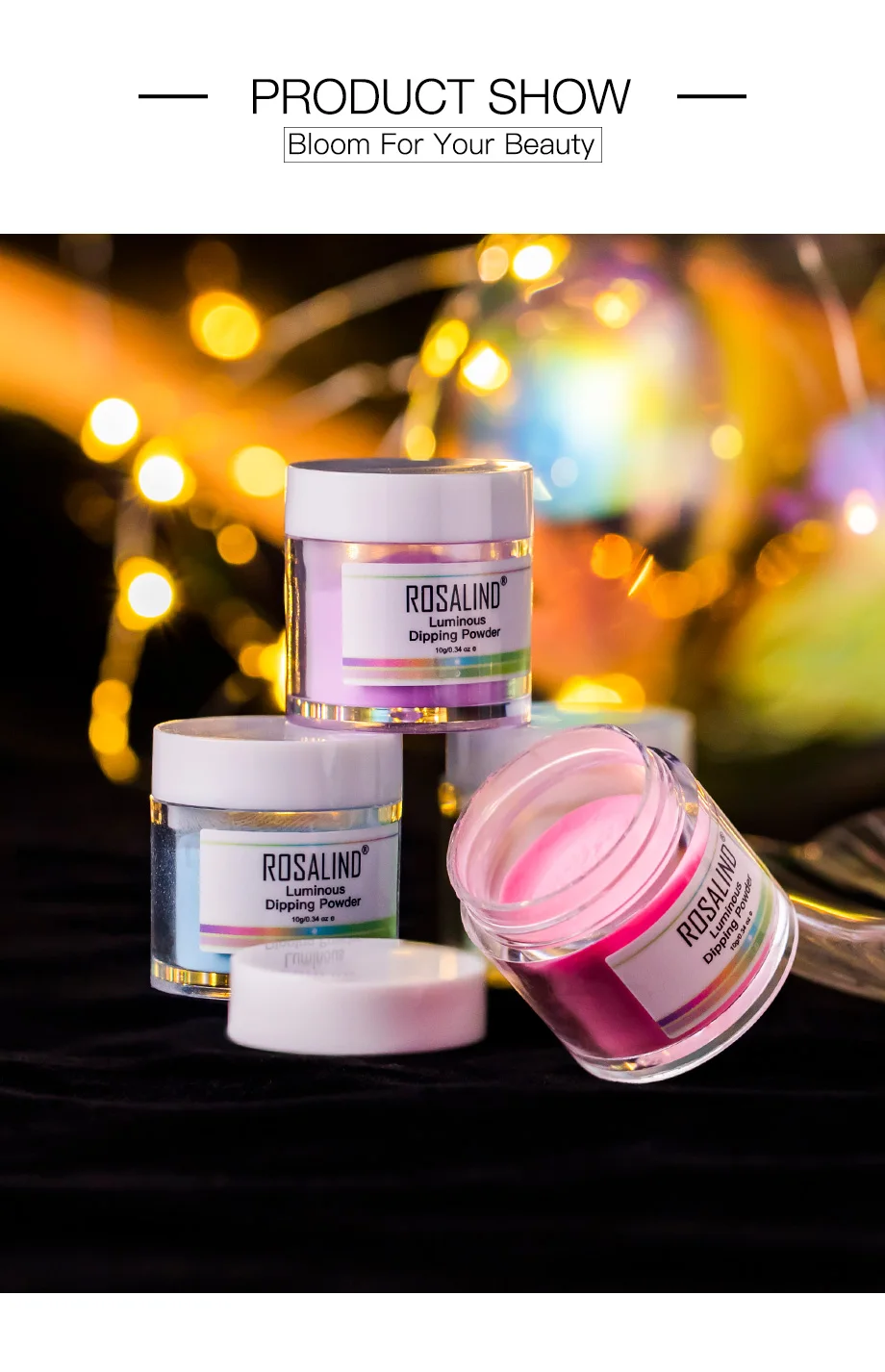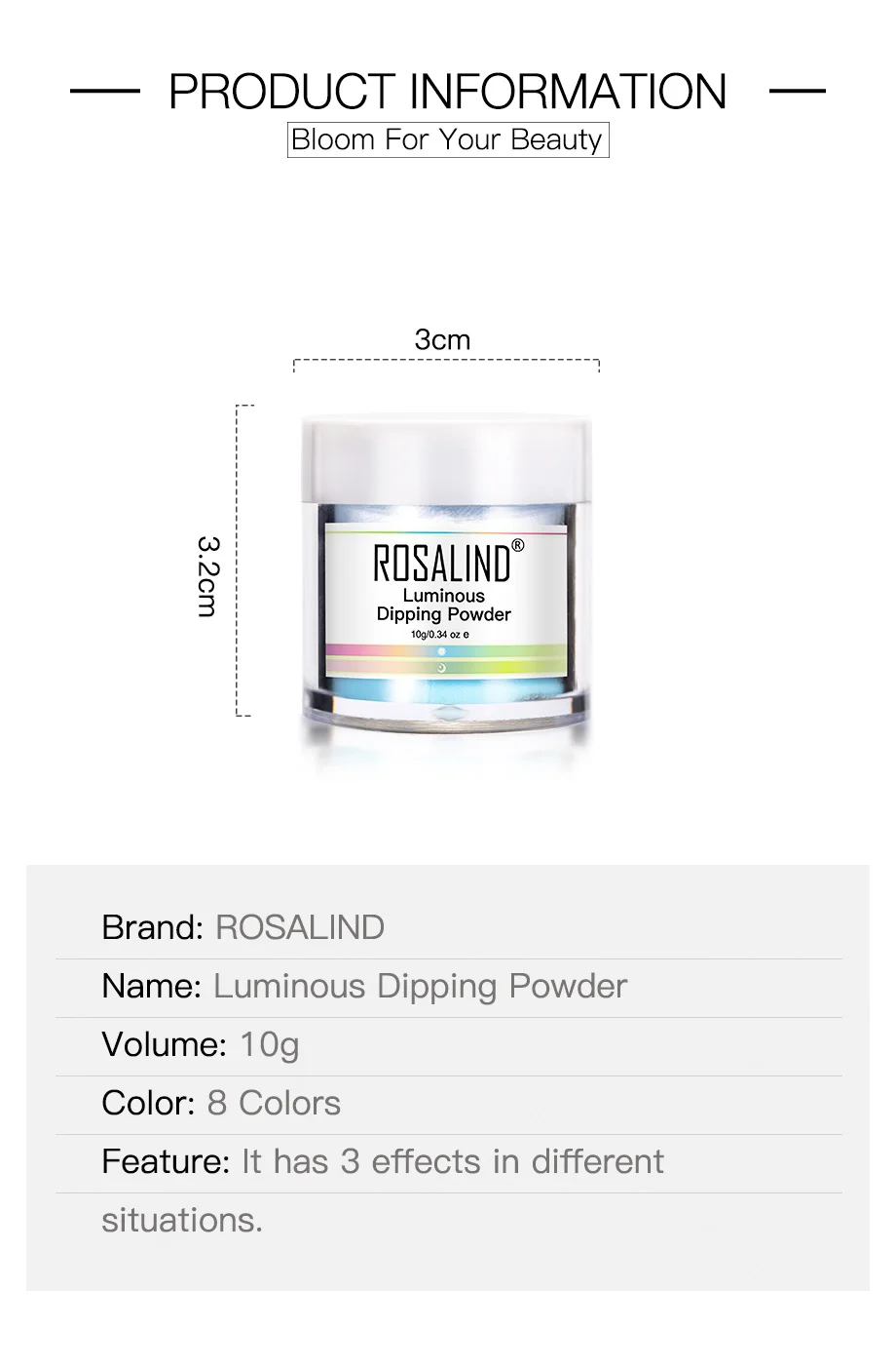 ROSALIND Блестящий светящийся порошок для дизайна ногтей, не требует отверждения, 10 г, голографическая пудра, погружение пыли для ногтей без лампы