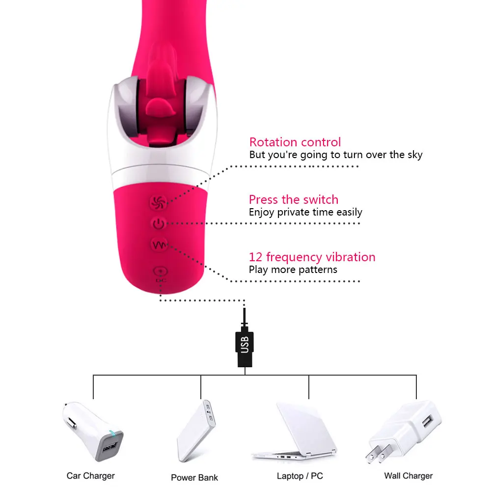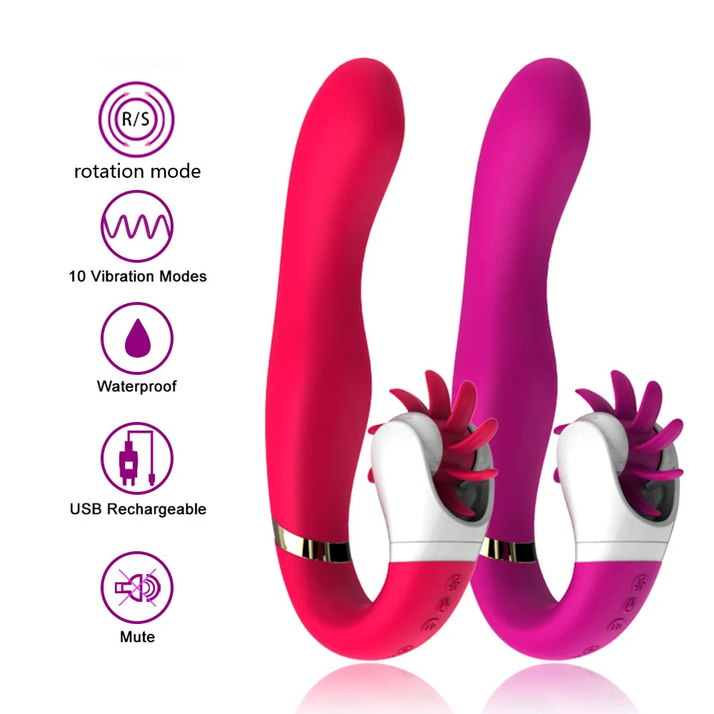 Высококачественный силикон с 10 режимами вращения и 10 режимами вибрацииЯзык Стиль Женский Вибратор Вибрация G-spot Массажер Мастурбация сексуальная игрушка, изогнутый вал дизайн для легкой стимуляции2 мощных мотора для точки G и клитораUSB Перезаряжаемый, легко заряжатьВодонепроницаемый дизайн, простая работаМатериал: Силикон ABSЦвет: розовый, красный, фиолетовыйПитание: встроенный аккумулятор, перезаряжаемый USBРежим: 10 виброчастот и скоростей вращения.Размер: как показано на фотографииТип: женская мастурбация для флирта; Стимуляция точки G; Вибратор эротический массаж