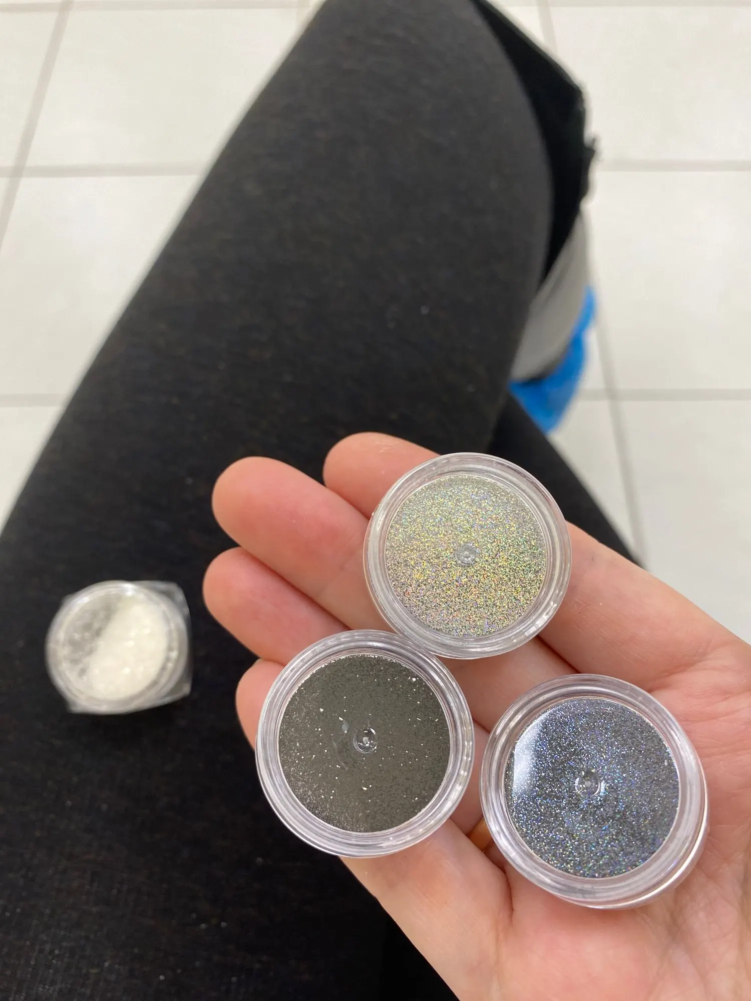 заказали 11.11 получили на почте 14.01. Посылка не отслеживалась, пришла под другим трек номером. Блеск хороший мелкий 11 номер, 27 номер крупнее. Баночки заполнены на половину. Думала 27 номер будет белее, но он тоже серый с блеском. Рекомендую!