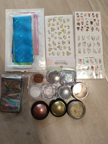 Заказ пришёл за полтора месяца. Получала в почтовом отделении. Упаковка хорошая, наклейки замечательные. Цвета сочные, рисунки не размытые, я довольна. Втирка классная, голографическая, продавец ещё положил спонжик для нанесения. Буду заказывать ещё. Рекомендую магазин и продавца.