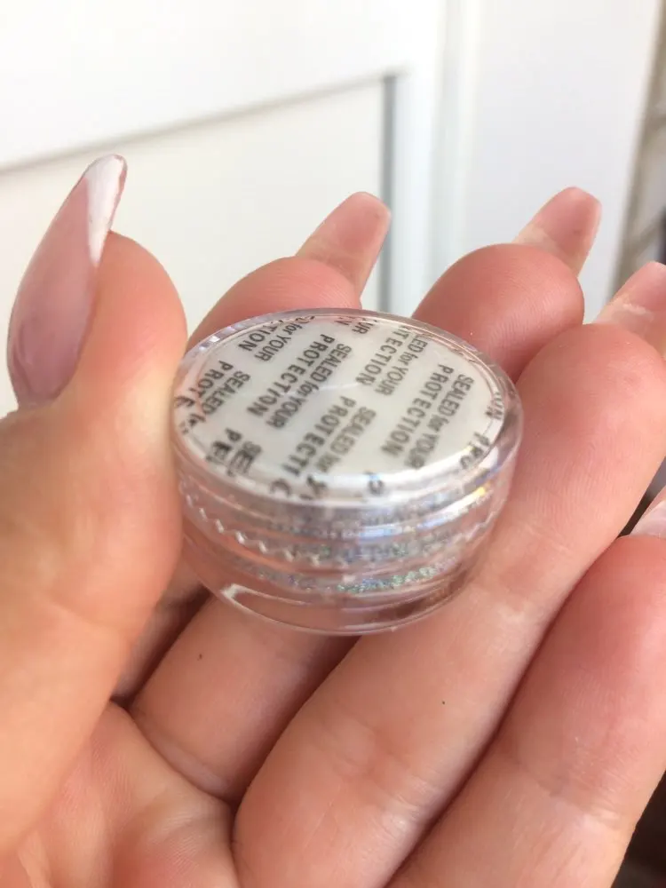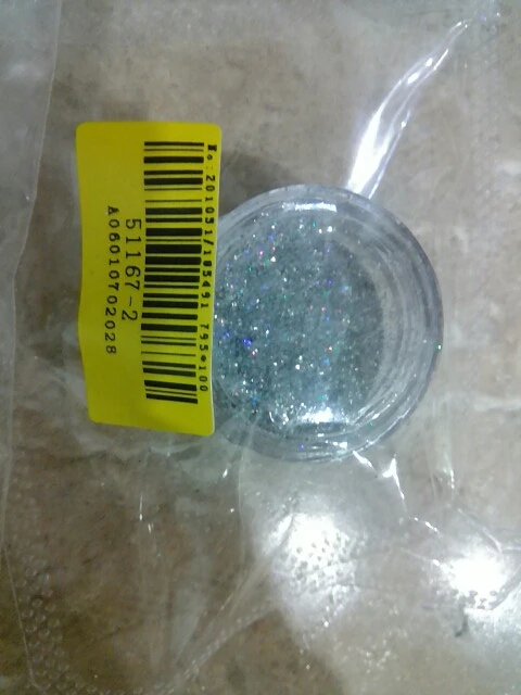 Товар соответствует описанию. Голубые блёстки не были запечатаны, как остальные. Защитная пленка приклеена не к самой баночке, а к крышке. Тем не менее, ничего не просыпалось. Доставка быстрая, товар пришел на неделю раньше указанного срока. Заказом довольна, буду заказывать еще