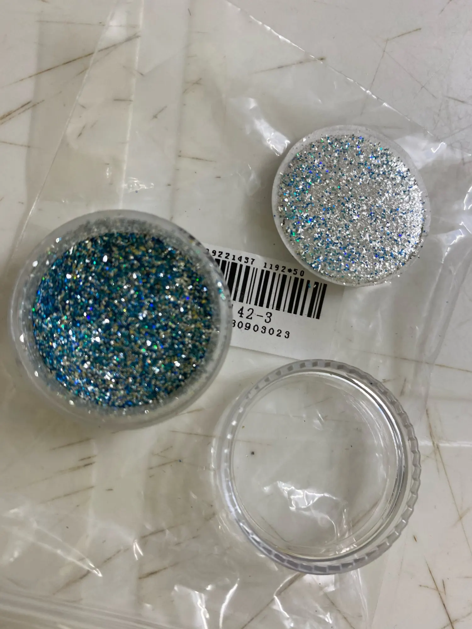 упакованы хорошо, пришли быстро. блестки как блестки, не на много дешевле, чем в магазинах