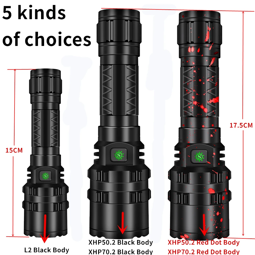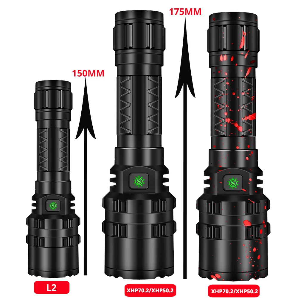 Ультраяркий светодиодный фонарик XHP70.2, мощный фонарь Xlamp XHP50.2 для охоты, L2, водонепроницаемый фонарь, Use 18650 26650