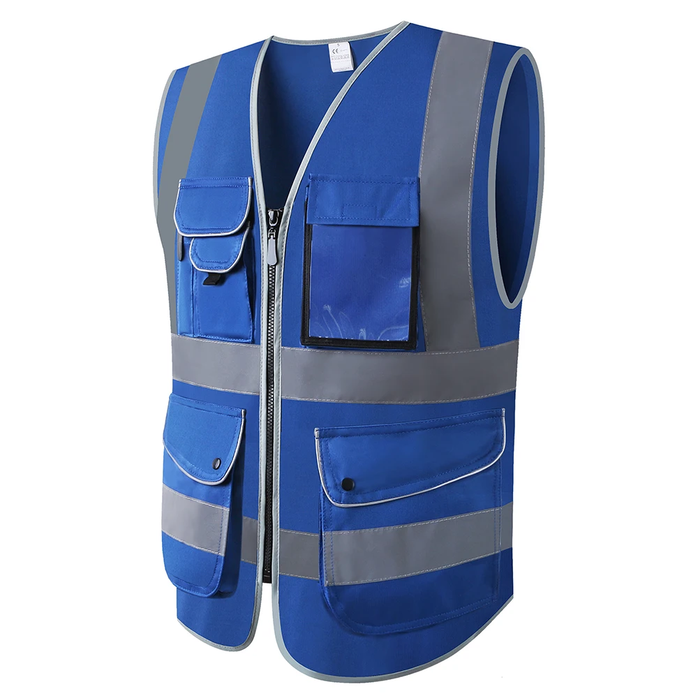 Светоотражающий жилет безопасности с высокой видимостью, на молнии спереди, со стандартами ASNZS ANSIISEA, голубая Защитная майка
