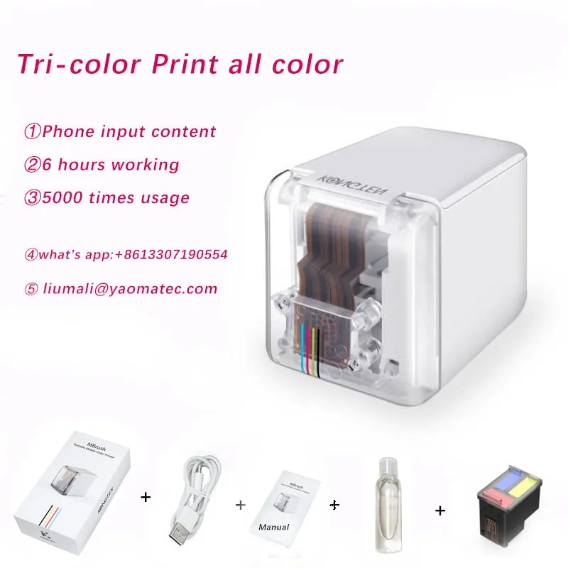 Портативный, мобильный, цветной, Стандартный, Wi-Fi, USB для ios, Android, беспроводной струйный принтер с Bluetooth и логотипом Тату A4