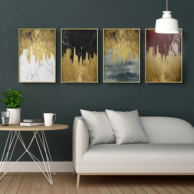 Современные абстрактные золотые холсты, художественные картины для гостиной, фотообои, Декор для дома