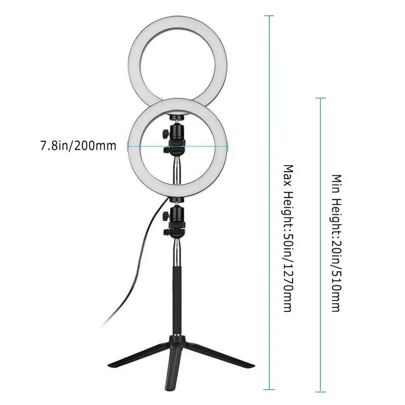 Кольцевой светодиодный светсветильник льник, 20 см, со штативом для телефона