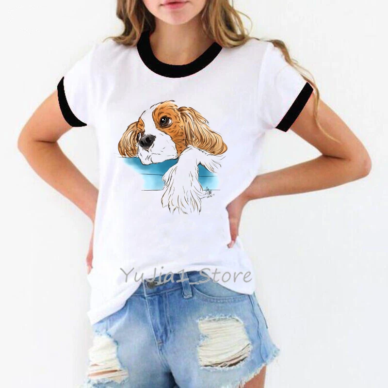 Футболка женская в стиле Харадзюку, кавалер, Кинг, Чарльз, спаниель...