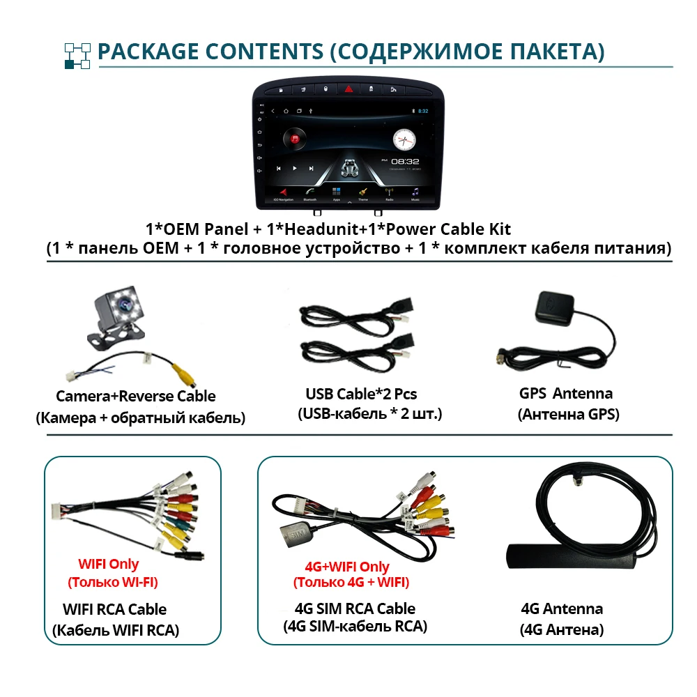 Автомобильное радио * 1 Адаптер рамы * 1 Кабель питания * 1 Обратный кабель * 1 Кабель RCA * 1 Антенна GPS * 1 USB кабель * 2