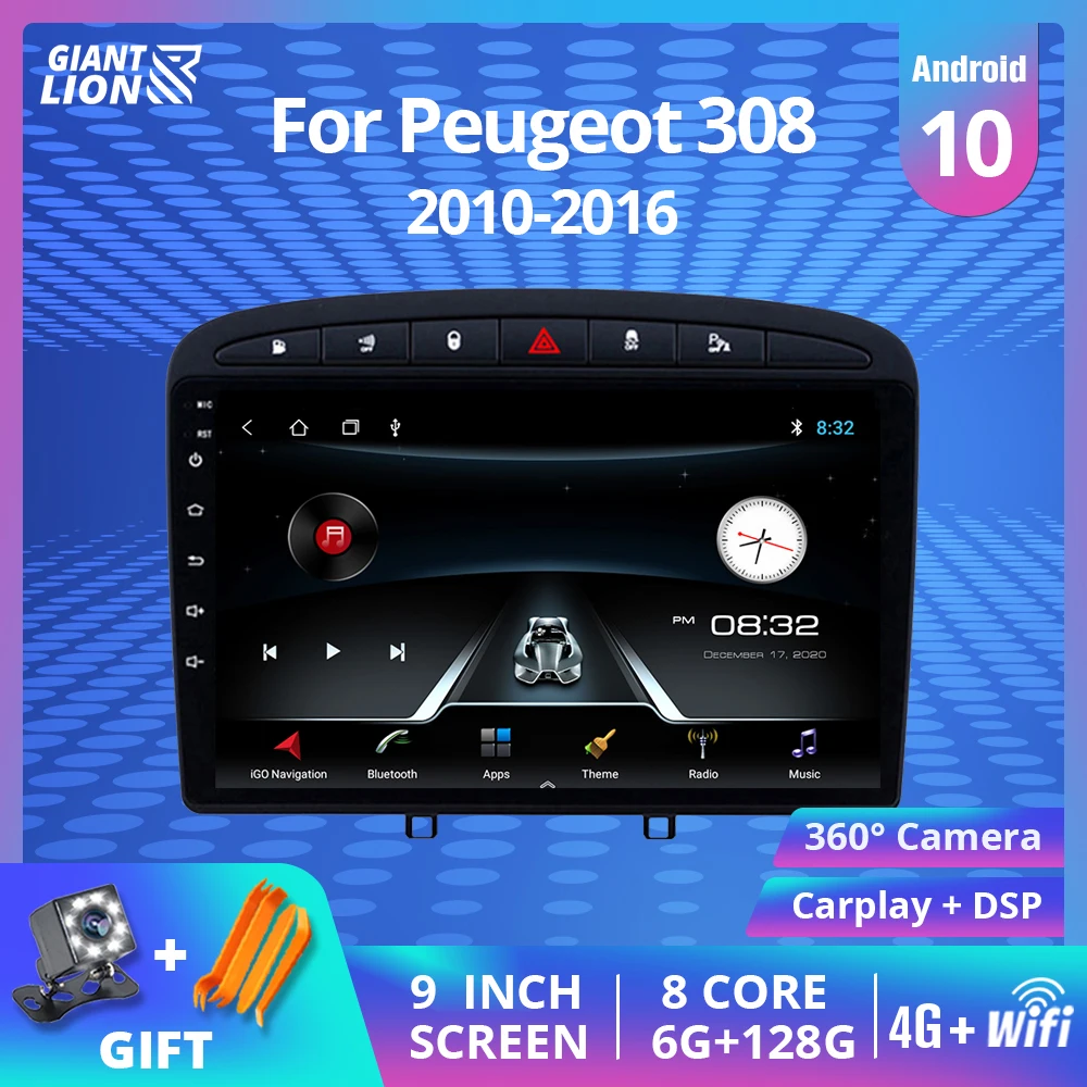 Автомобильный мультимедийный плеер, 2DIN, Android 9,0, для автомобильного радио Peugeot-308, 408, 2010-2016, стерео, навигация, автомагнитола, DVD-плеер