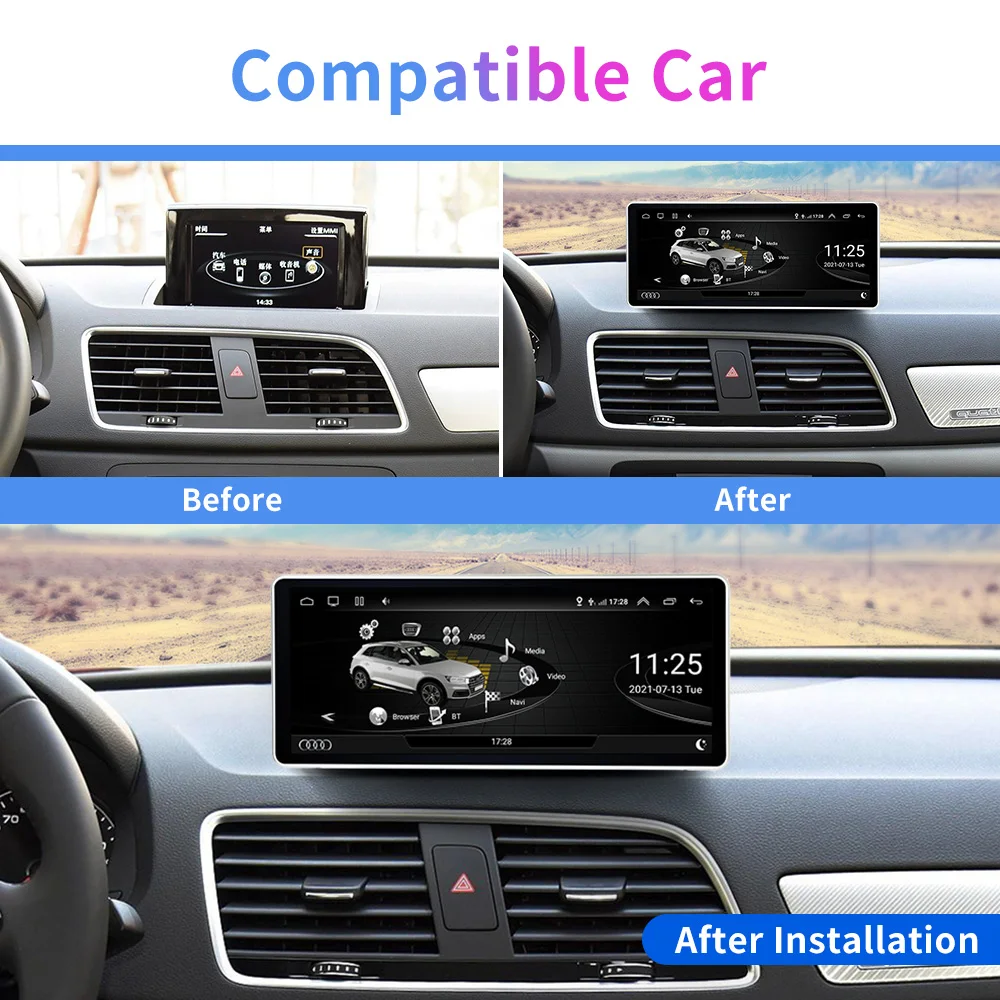 Экран соответствует ожиданиям по качеству/цене. Он идеально вписывается в доступное пространство и очень хорошо решается с точки зрения интеграции и совместимости с функциями автомобиля. Это планшет с возможностью установки приложений с Play Now, а также сохраняет оригинальную систему (кроме браузера) с оригинальными физическими кнопками. Единственным недостатком является то, что вы должны обмануть машину с помощью вспомогательного кабеля AMI для звуковой темы. Так же, как они устанавливают в Испании намного дороже. Это была отличная новость, чтобы увидеть, что есть интерфейс, похожий на тот, который предлагает Audi для экрана, а не только те, которые появляются на фотографиях, которые появляются на нескольких автомобилях, но нет ни одного Audi Q3. Это отличное обновление для вашего автомобиля, увеличение разрешения (не будучи блестящим) чувствует себя прекрасно. Очень доволен вниманием продавца до, во время и после покупки. Всегда доступно для всех видов вопросов (доставка, установка, сомнения, послепродажное обслуживание). Настоятельно рекомендую!