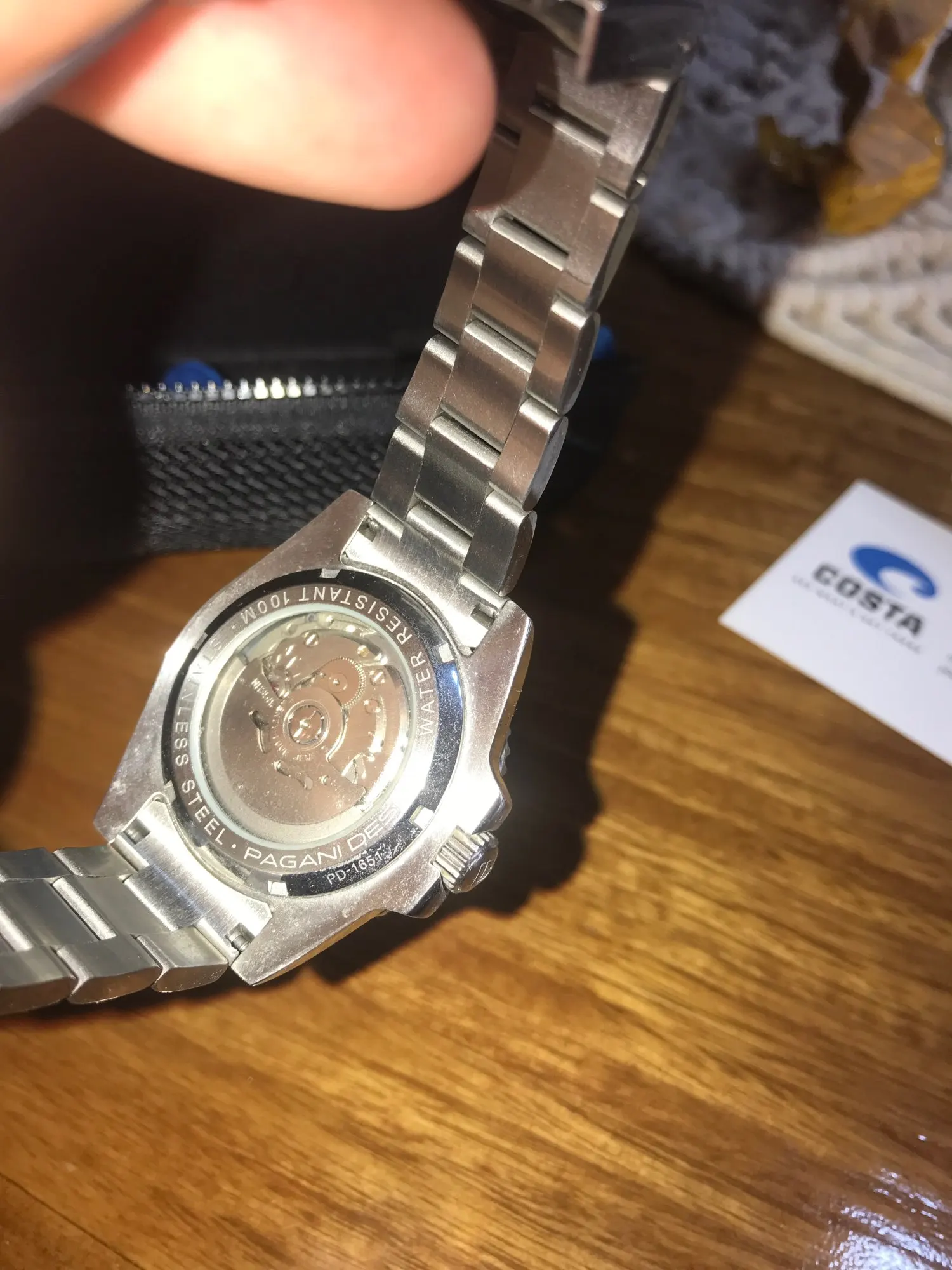 Я был немного скептически относится к этим часам, но как только они прибыли, они красивые! Хороший размер, без острых краев, отличный автоматический механизм. Цвета очень яркие. Я куплю еще несколько часов Pagani в 11,11 продаже!