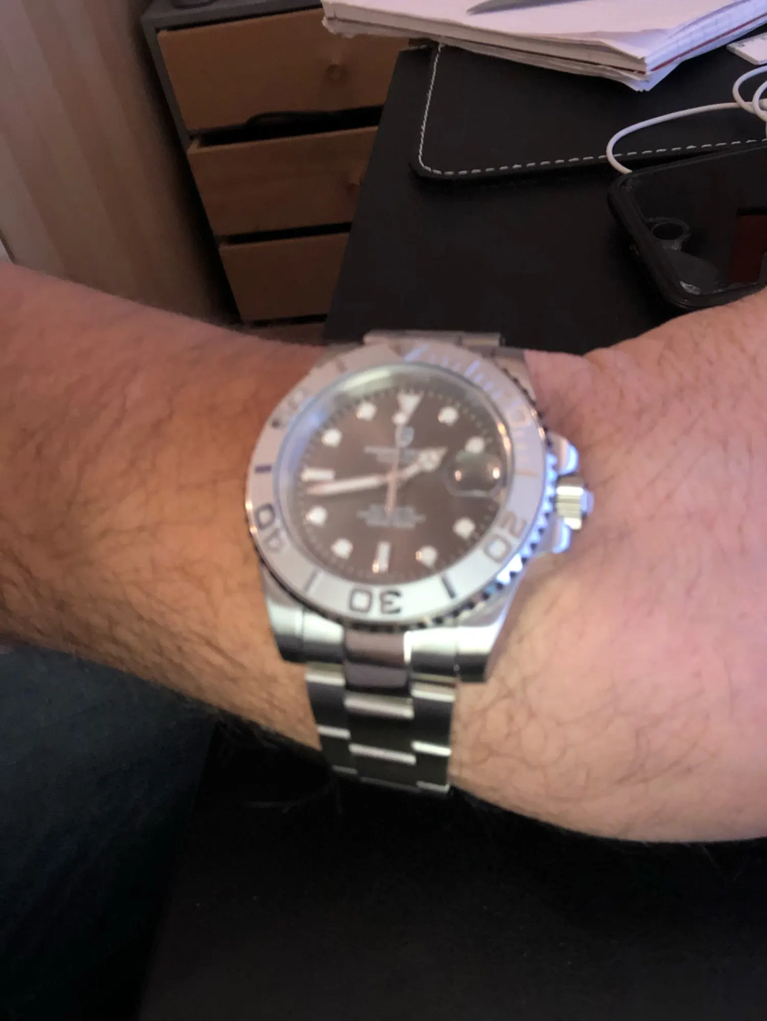 Часы получили быстро, они фантастические. У меня просто есть Примечание, браслет немного слишком узкий и показывает фиксирующую планку. Слишком плохо в противном случае, было идеально