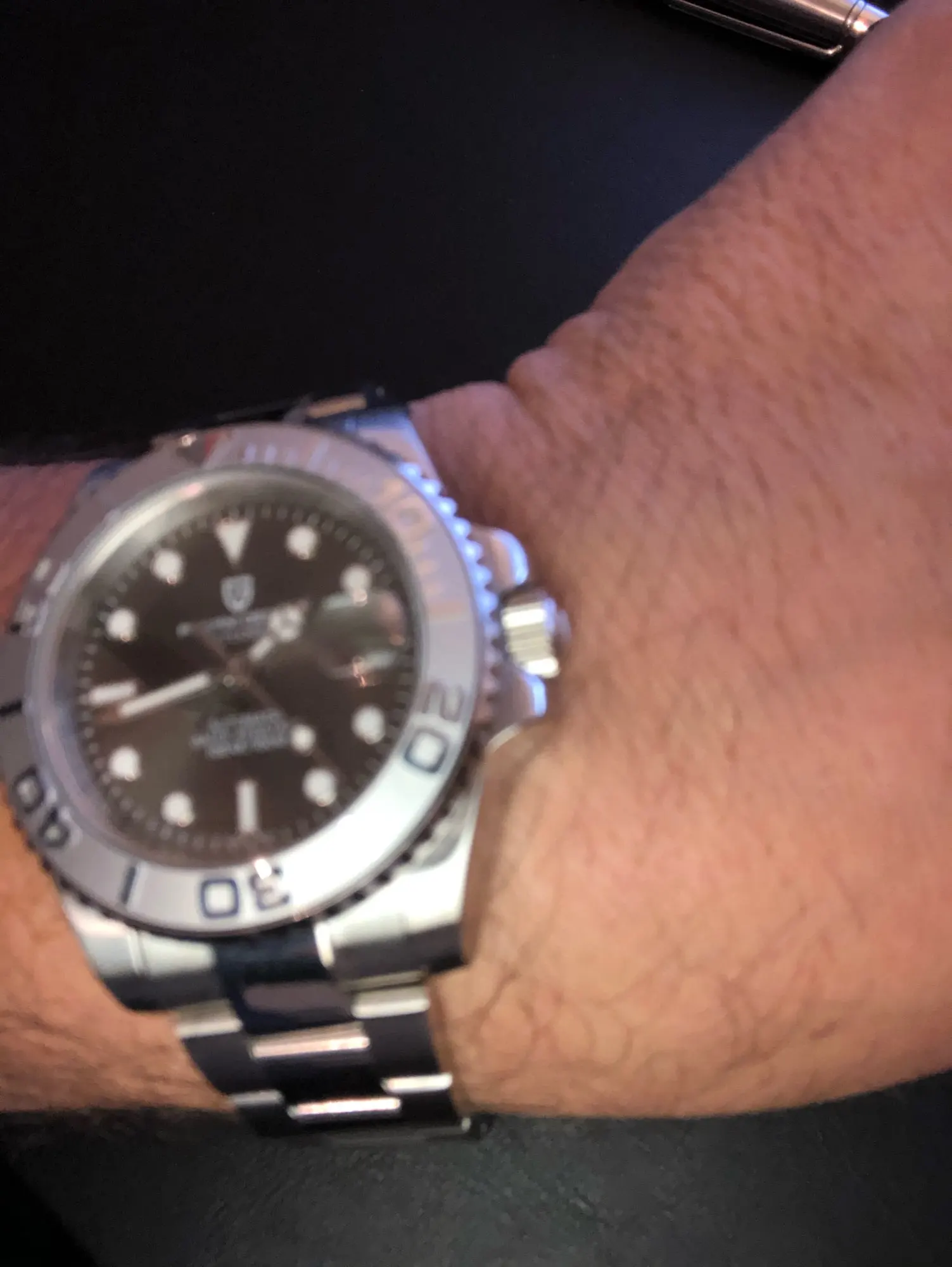 Absolut schöne wertig wirkende Uhr. Die Zahlen auf der Lünette sind erhoben und poliert. Auf den Bildern ist das schwer zu erkennen. Absolut begeistert!