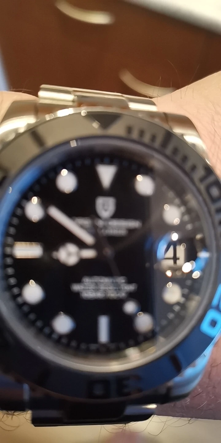 Выглядит хорошо, часы с ободком подходят, хотя немного выровнены, хотя и не хуже, чем Seiko! Синий градиентный циферблат не такой заметный, как на изображении. Циклопс хорошо выровнен. В целом, отличное соотношение цены и качества