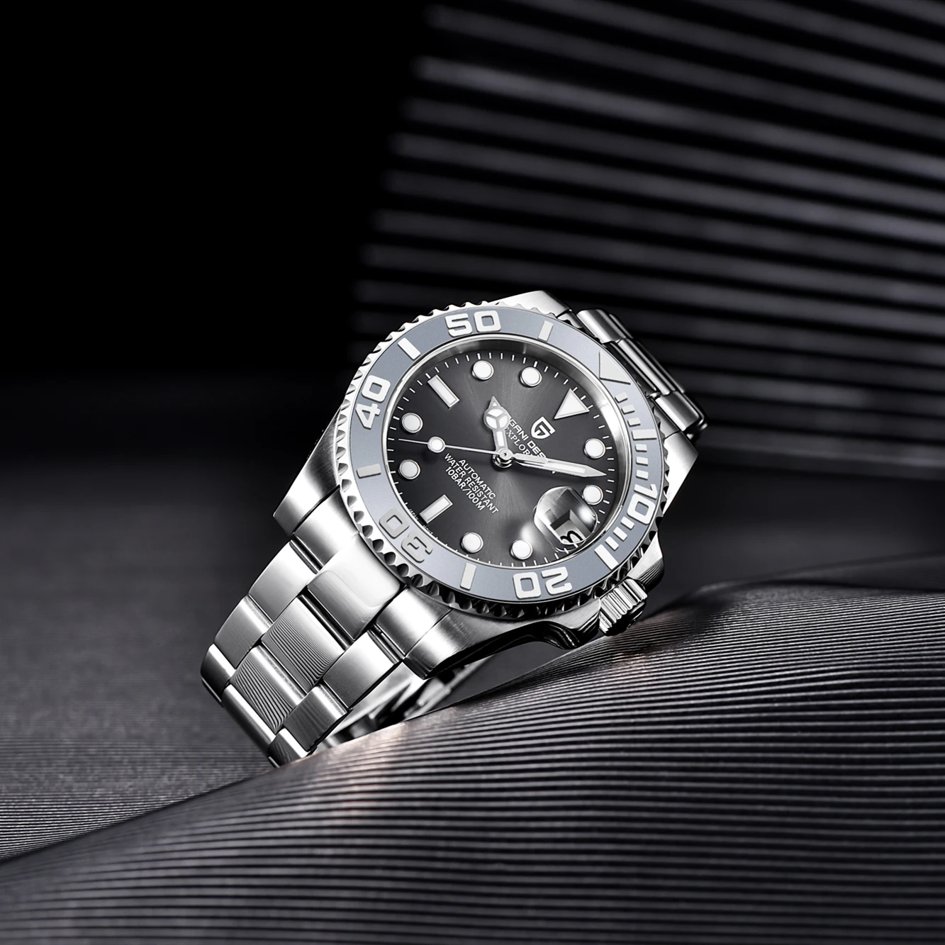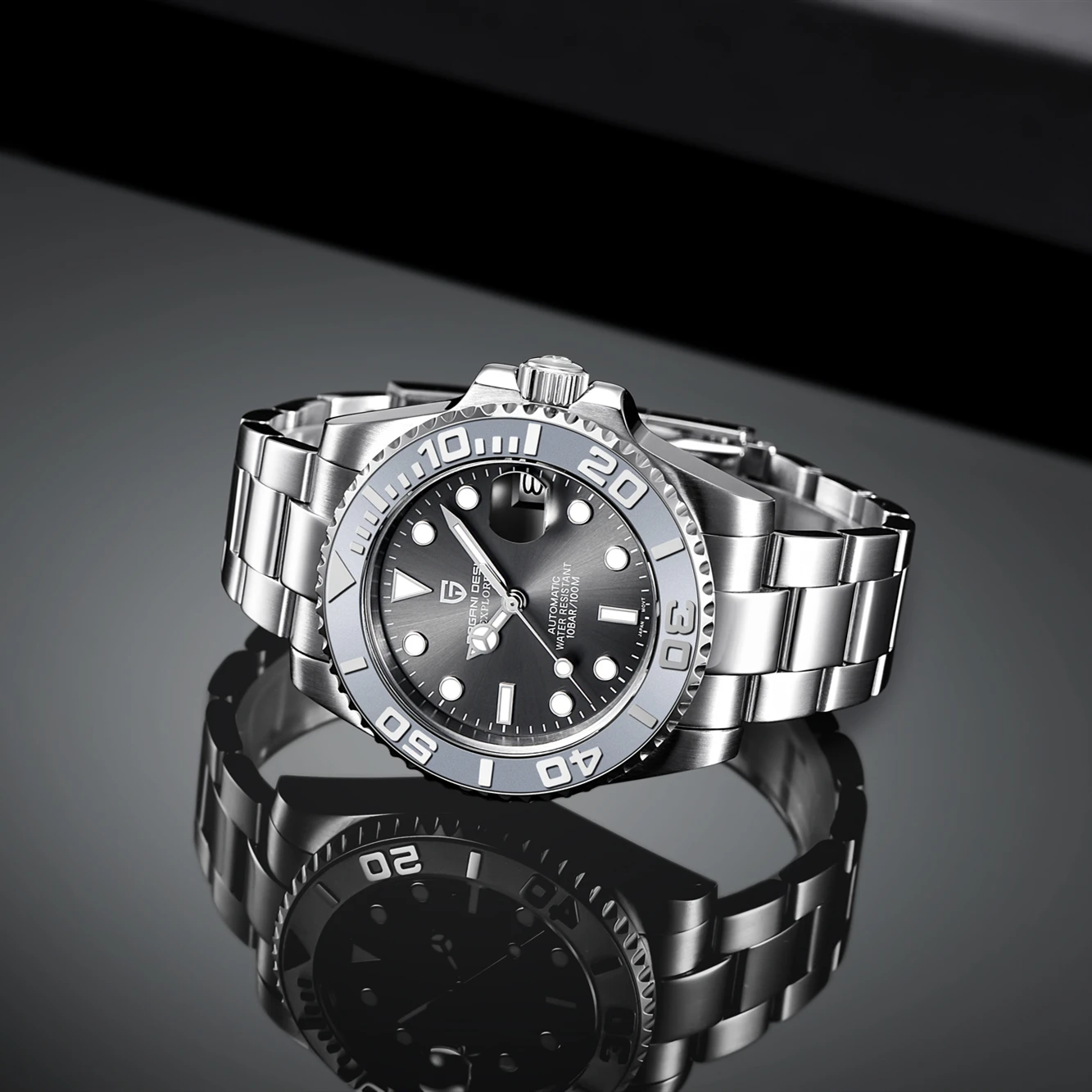 Часы мужские, механические, водонепроницаемые, с сапфировым стеклом, из нержавеющей стали