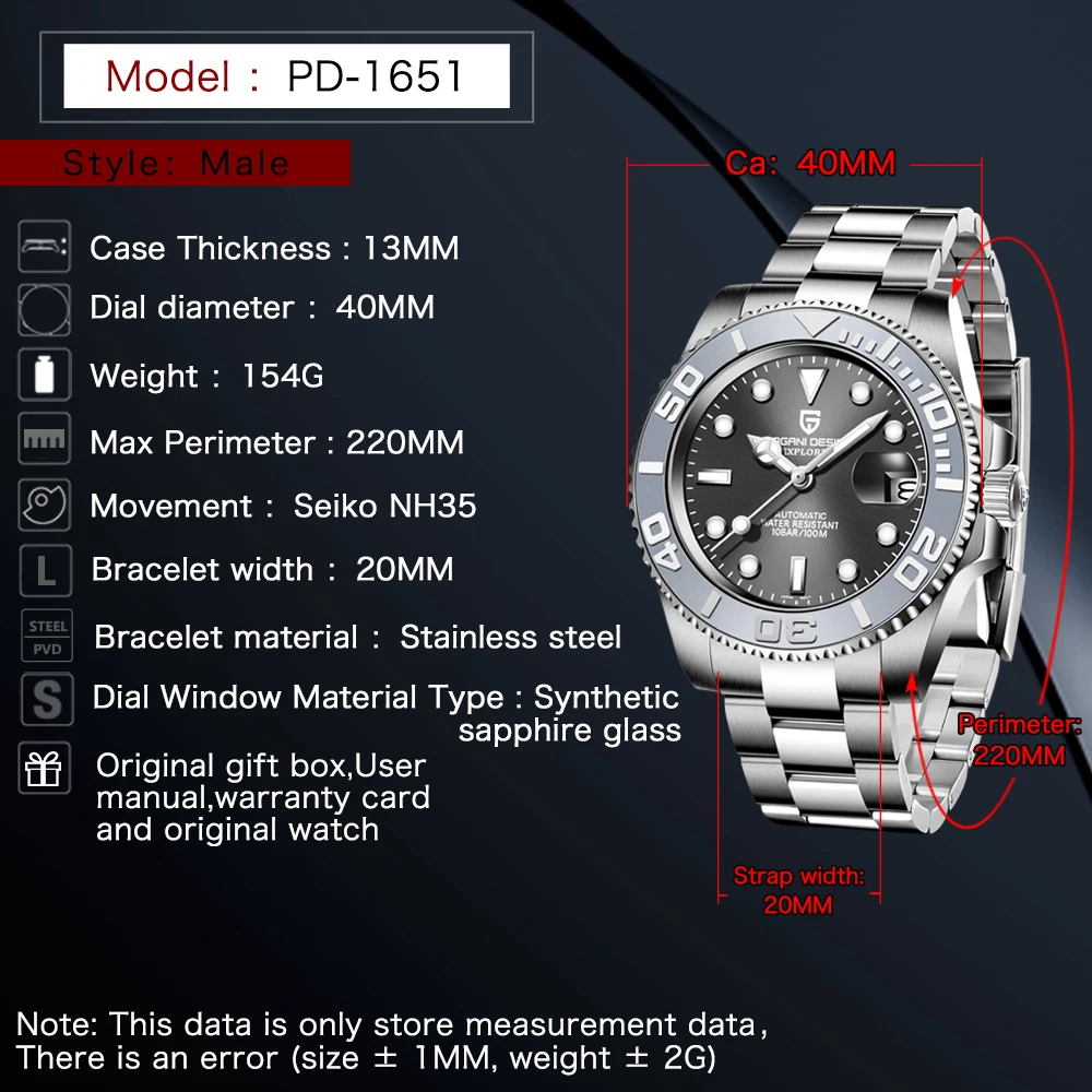 Auch diesmal wie immer alles so wie es sein soll Pagani Design Liefert in sehr hoher Qualität und ohne Fehler. Dies ist meine zehnte Pagani Uhr und alle waren perfekt und sehr schnell nach Deutschland geliefert. Ich kann Pagani Design Uhren nur empfehlen also fünf von fünf Sterne. Danke an Pagani Design