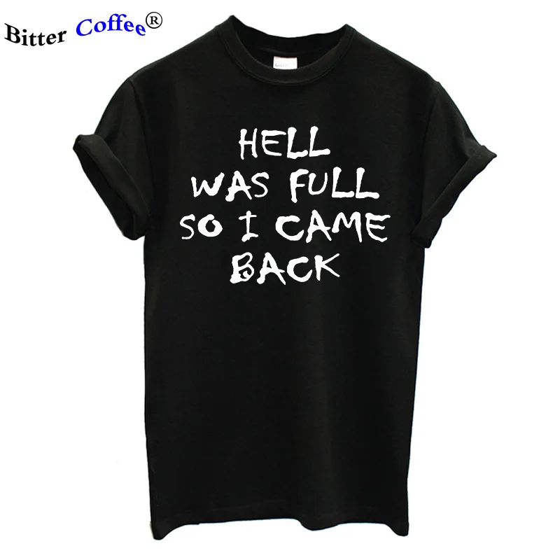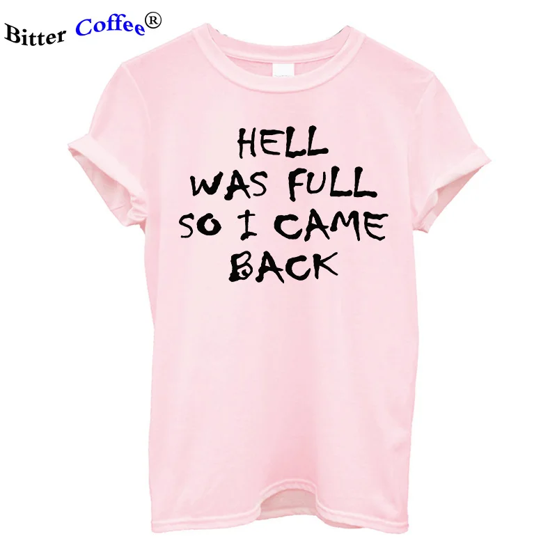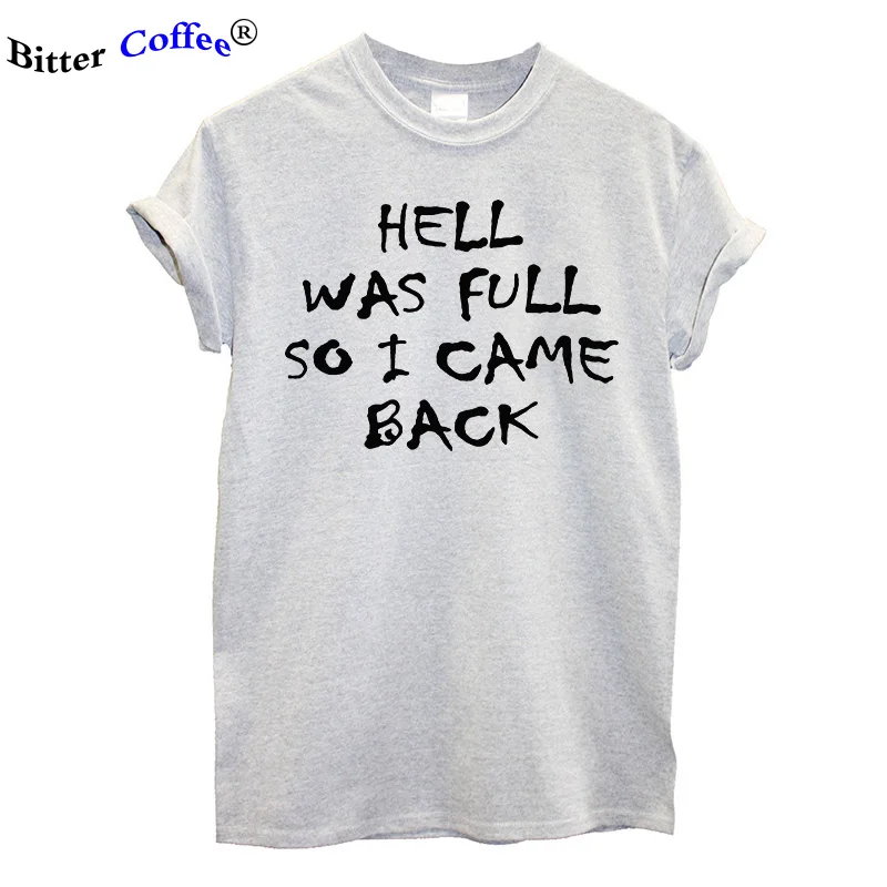 Новая женская футболка с надписью HELL WAS FULL, футболка с надписью Итак я вернулась, женская футболка, хлопковая Повседневная забавная футболка для женщин, топ для девушек, хипстерская футболка, 5 цветов