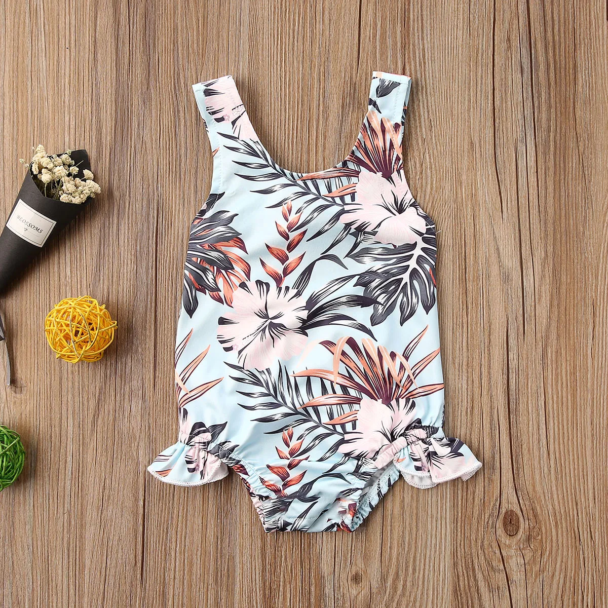 Купальник в стиле бохо для детей 0-3 лет, летний Цельный купальник с цветочным принтом, купальный костюм для сестры и брата, пляжная одежда для детей