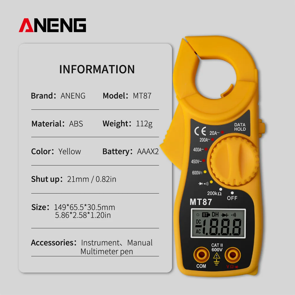 Цифровой мультиметр-зажим MT87, амперметр переменногопостоянного тока, вольтметр, измерители сопротивления с ЖК дисплеем