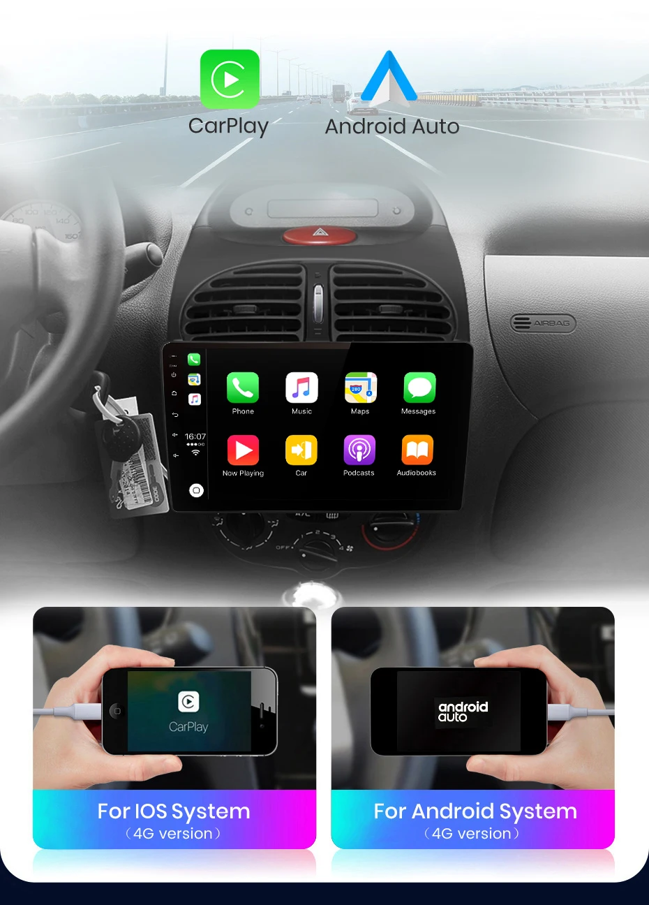 Bulit in CarPlay4G+64G supports, easy to handle iPhone while driving