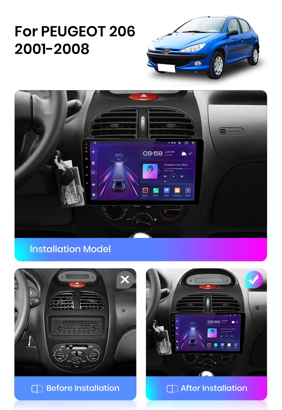 > Функция Junsun V1 для Peugeot 206 2001 2002 2003 2004 2005 2006 2007 2008