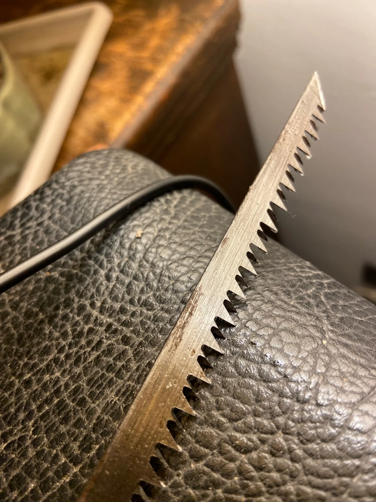 Пила очень хорошая, поставляется с картонной крышкой для лезвия, очень хорошо упакована и прибыла быстрее, чем я ожидал. Кабель изготовлен из дерева и не имеет лака, который может генерировать износное преждевременное лезвие, пропитанное маслом. Я ожидал, что товар будет продавцом.