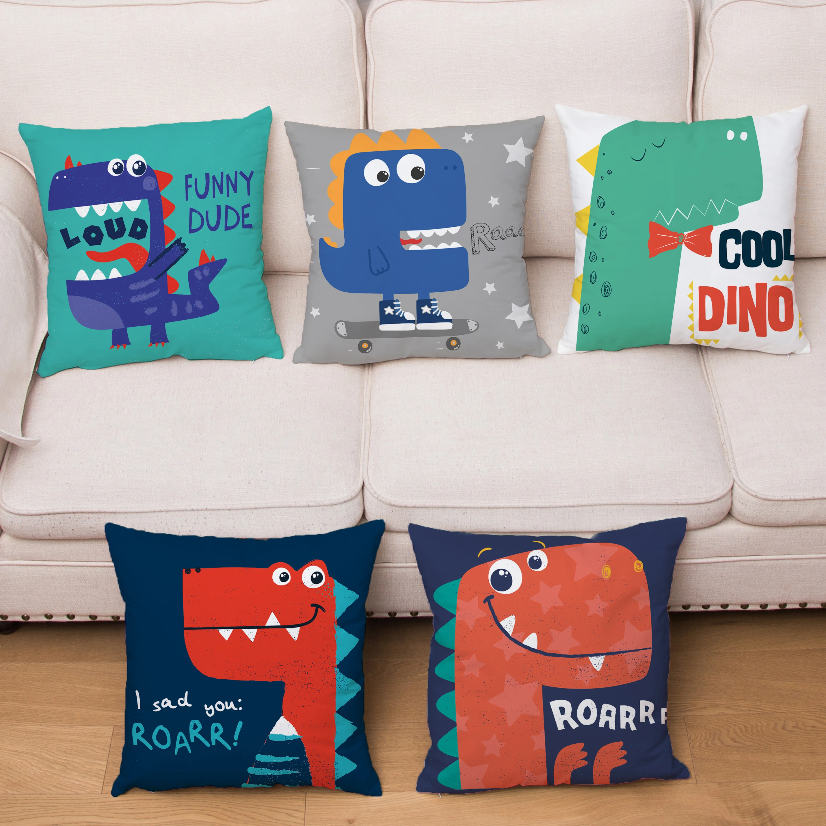 Чехол для подушки в скандинавском стиле с милыми животными, мультяшный динозавр, принт, наволочки для подушки, 45*45, чехол для диванной подушки, супер мягкий чехол для короткой плюшевой подушки