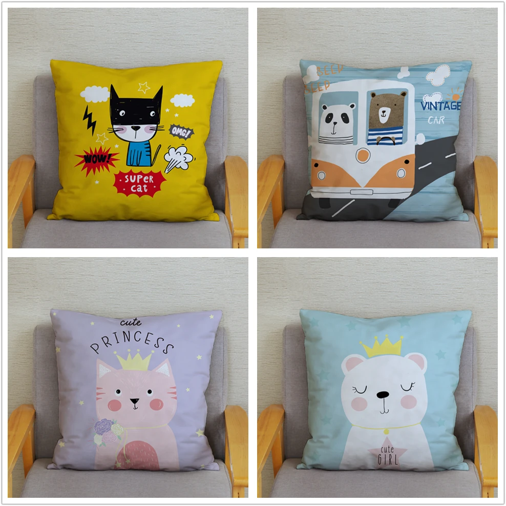 Милый мультяшный чехол для подушки с изображением автомобиля и кота...
