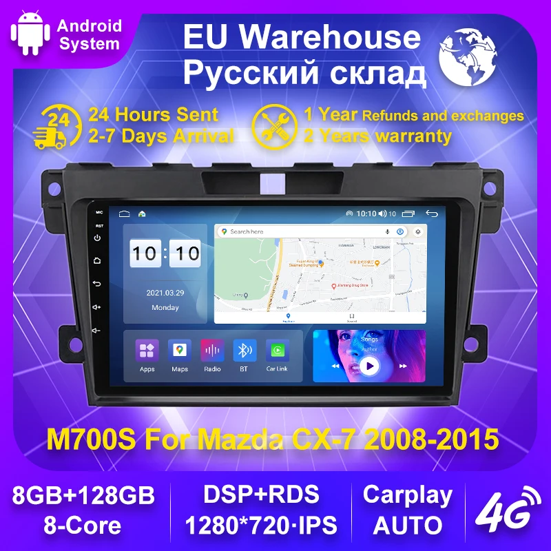 2Din Android 10 4G сетчатый автомобильный радиоприемник с навигацией GPS мультимедийный плеер для Mazda CX-7 CX7 CX 7 2008-2015 WI-FI BT Поддержка Carplay