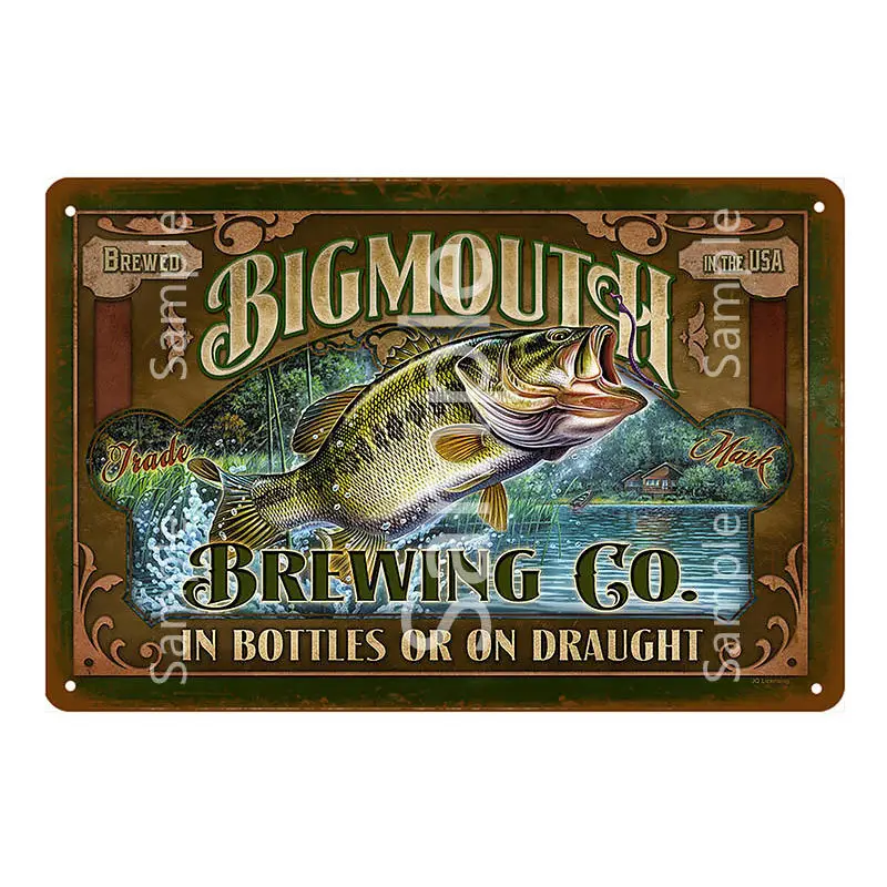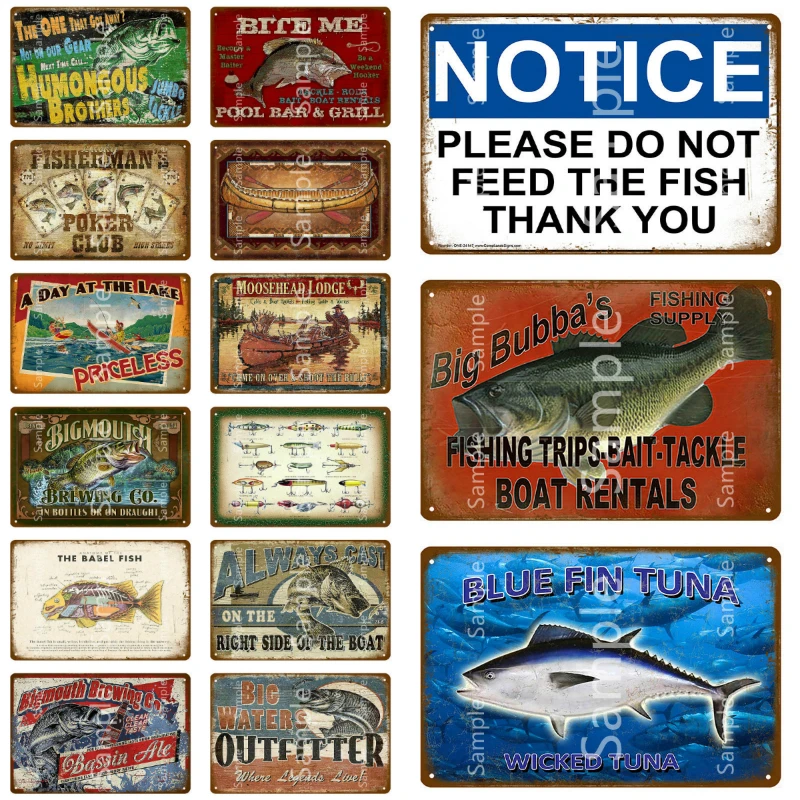 Большая водная Рыбалка потертый шик металлическая жестяная вывеска Бар паба Открытый Декор Рыбак плакаты рыба голый стикер стены YK030