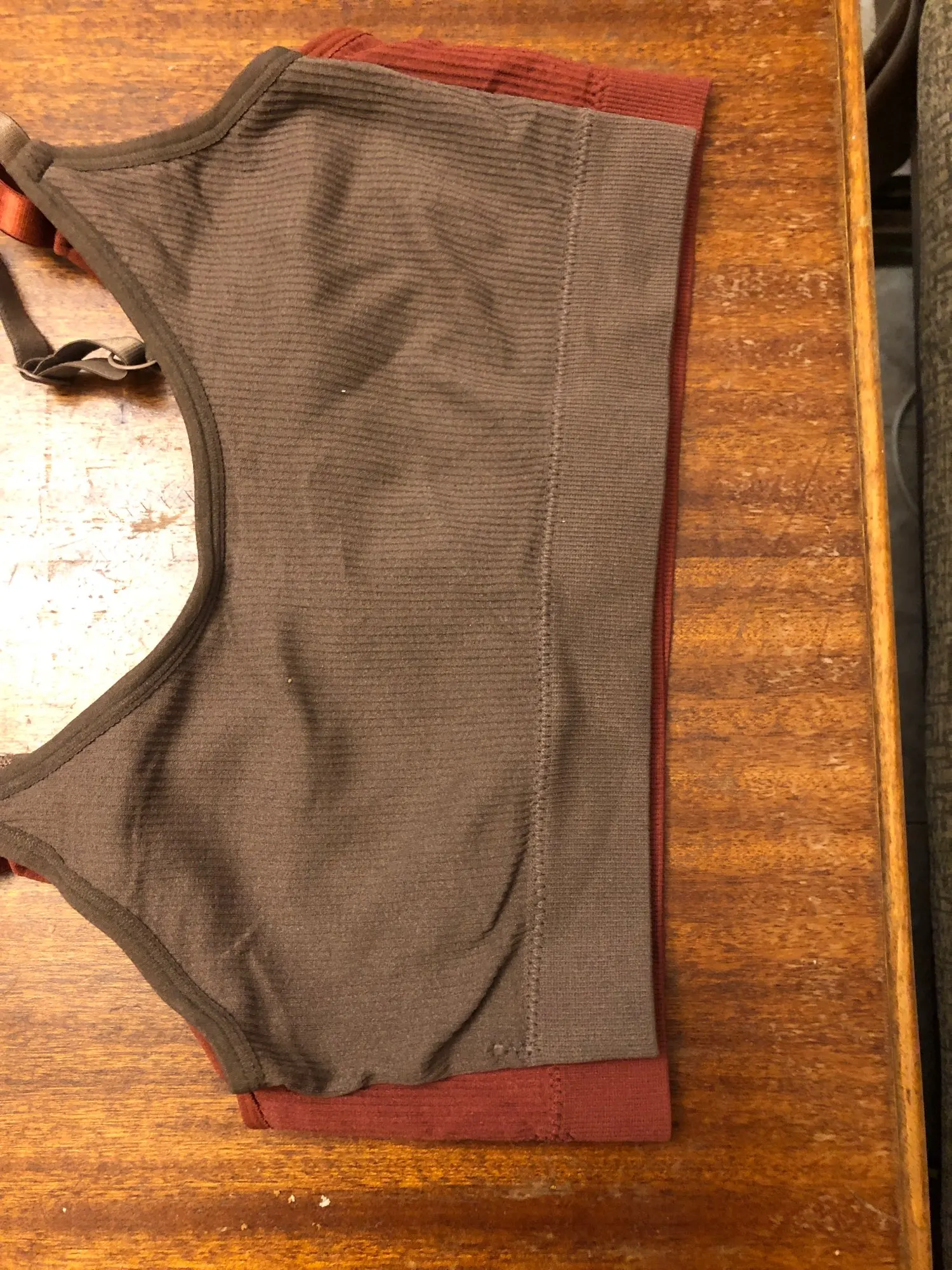 Хороший топ, мягкий, удобный, не перетягивает, отлично подходит для йоги и пилатеса. На ОГ 95 ОПГ 85 взяла размер plus size, подошел с запасом. При первой стирке немного красился, но в дальнейшем использовании такого не заметила. Очень быстрая доставка: до Воронежа менее двух недель.