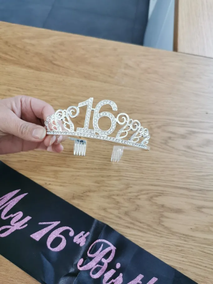 Милая тиара 16 на день рождения, повязка на голову с короной, атласный пояс для девочки на 16-й день рождения, украшение для вечеринки принцессы, украшение для торта, подарки